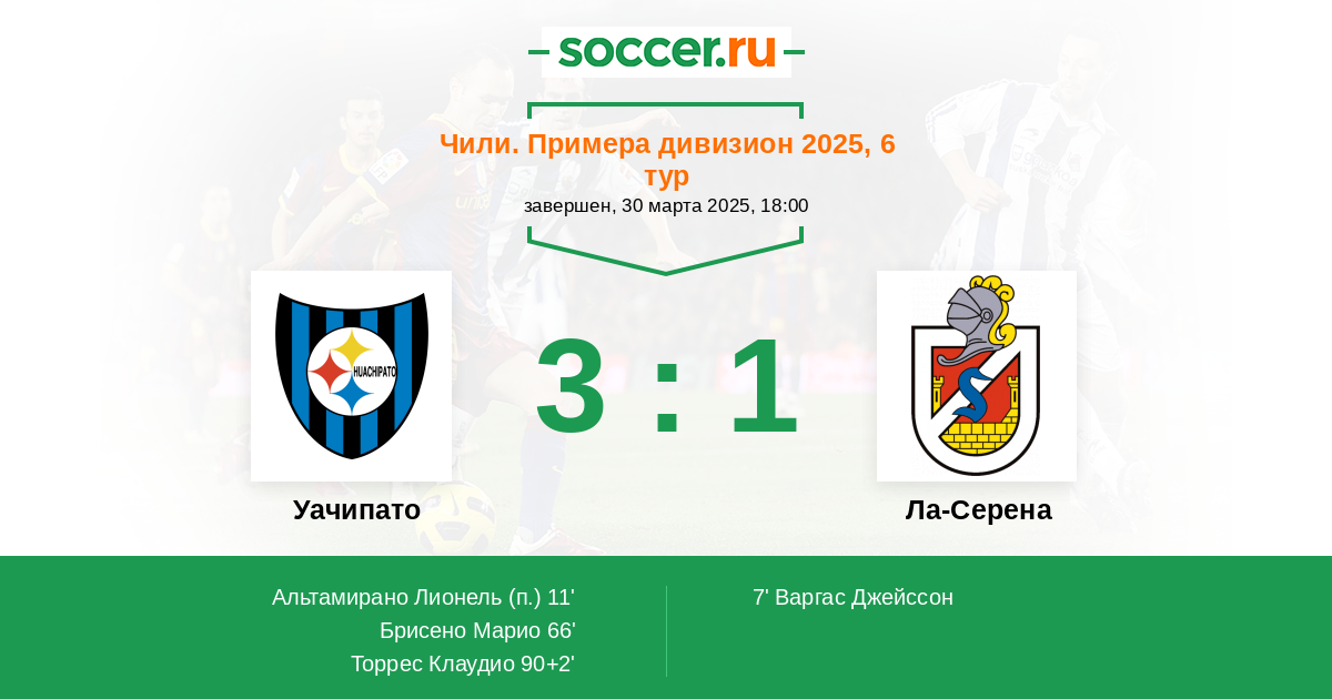 90+2' (3:1) Торрес Клаудио (29) (Брисено Марио (7))