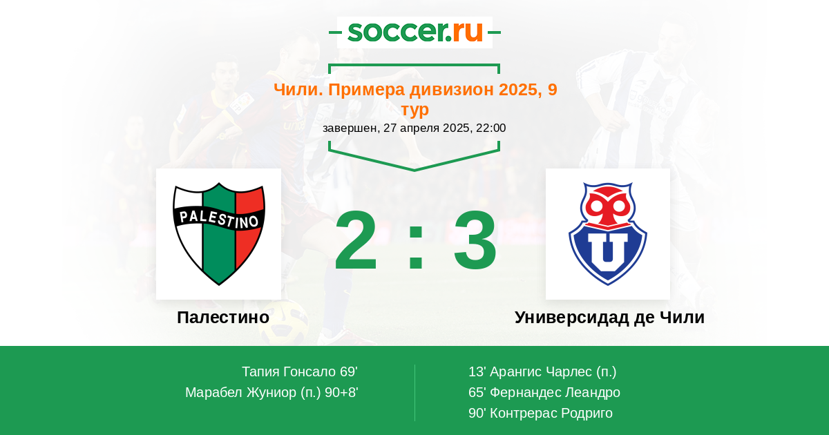 65' (0:2) Фернандес Леандро (9) (Контрерас Родриго (27))