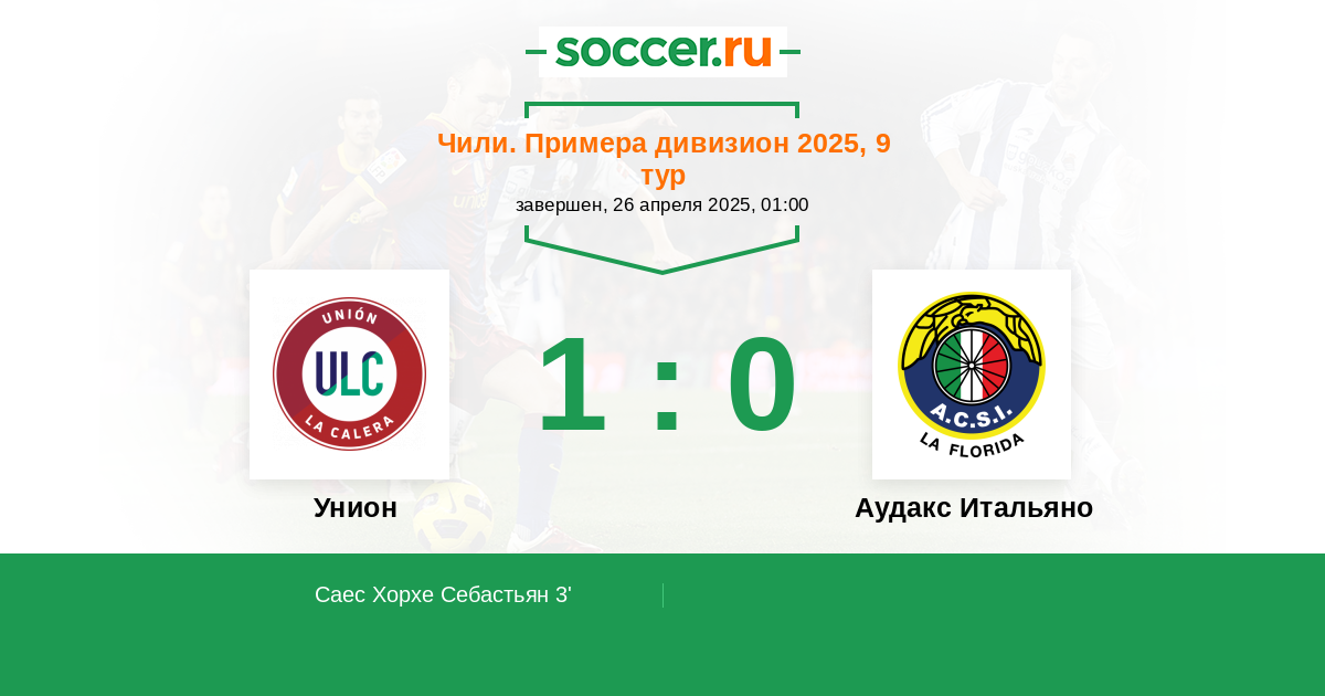 3' (1:0) Саес Хорхе Себастьян (11)