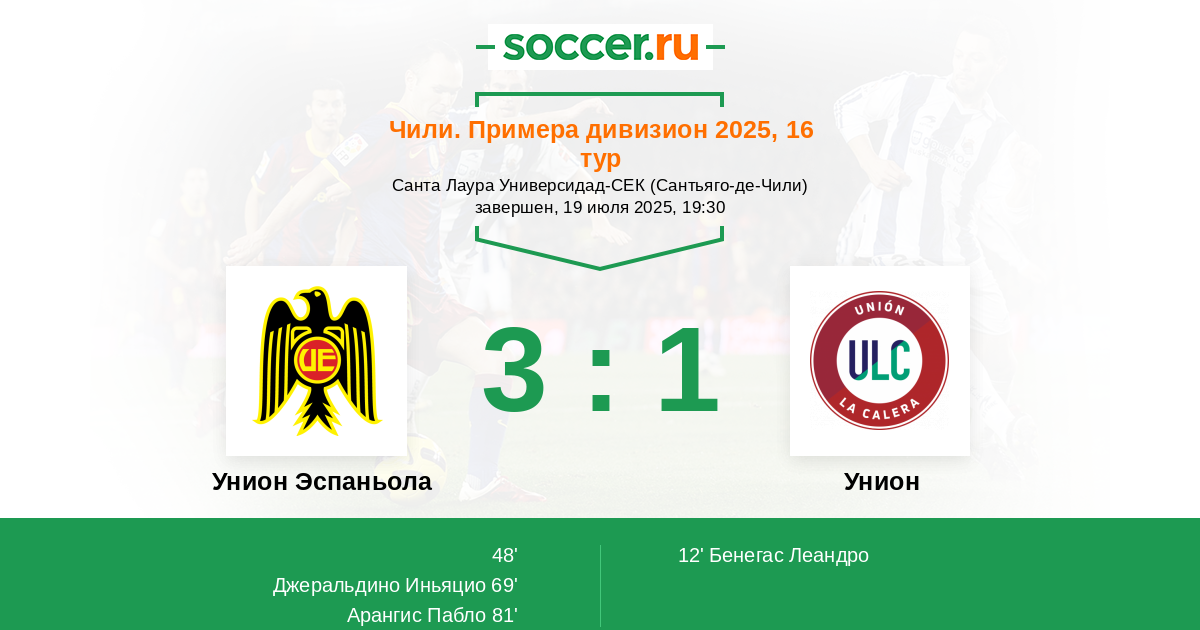 Запасные: 8 Карвальо Брайан (с 81'), 24 Норамбуэна Габриэль (с 76'), 4 Селис Милован (с 75'), 11 Уэрта Ренато (с 63'), 3 Видаль Валентин (с 46'), 12 Урибе Энцо, 16 Рамирес Симон