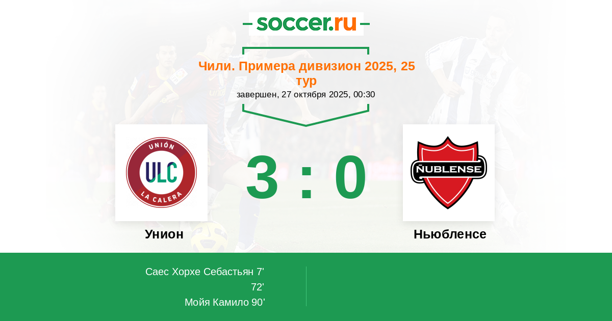 7' (1:0) Саес Хорхе Себастьян (11) (J. Soto)