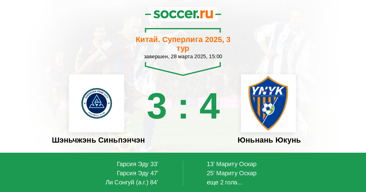 33' (1:2) Гарсия Эду (11) (Чжан Юйцзе (22))