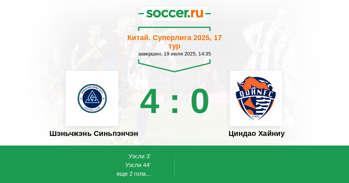 44' (2:0) Уэсли (7) (Жипенг Цзян (4))