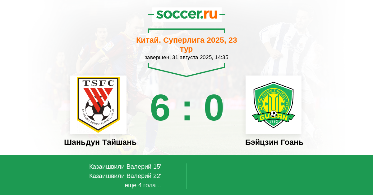 62' (5:0) Гильерме Мадруга (8) (Гао Чжуньи (33))