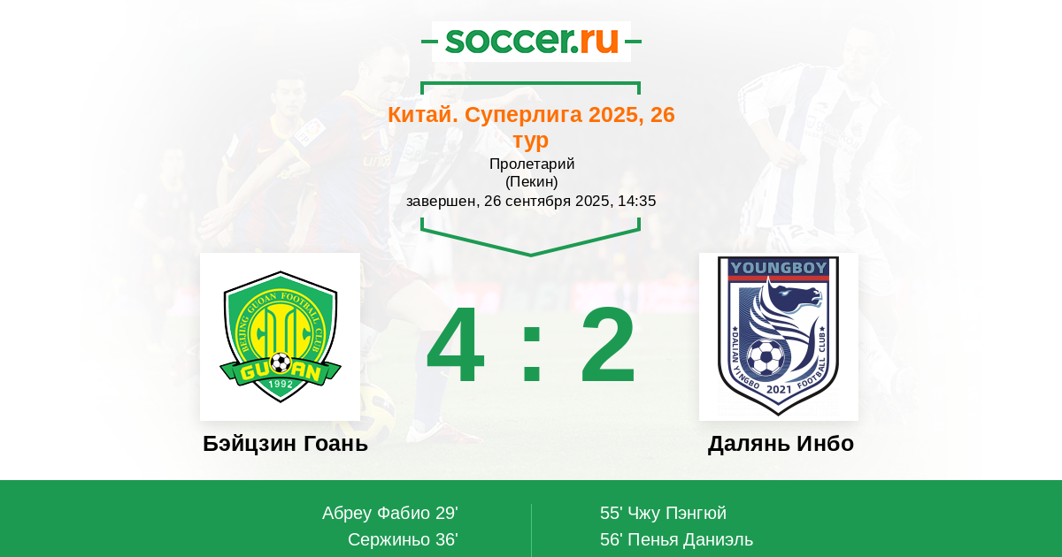 53' (3:0) Абреу Фабио (29) (Чжанг Сиджэ (10))