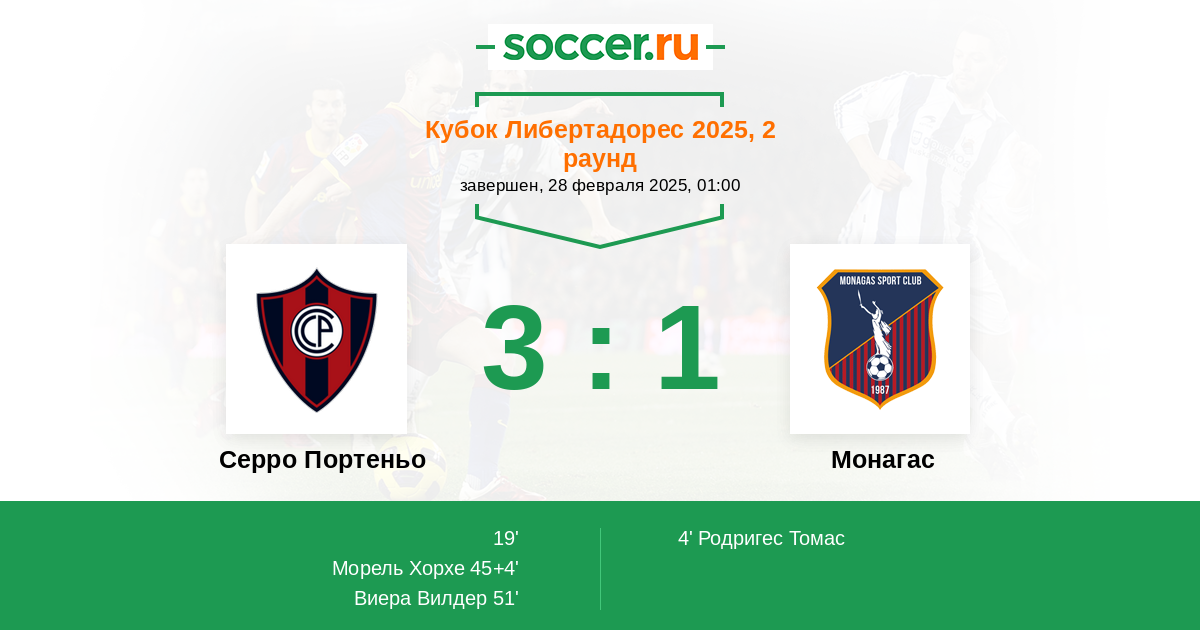 51' (3:1) Виера Вилдер (20) (Перес Матиас (3))