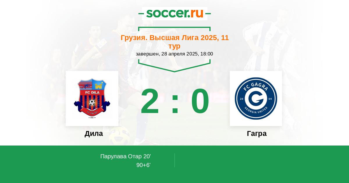 20' (1:0) Парулава Отар (11) (Шекиладзе Шота (22))