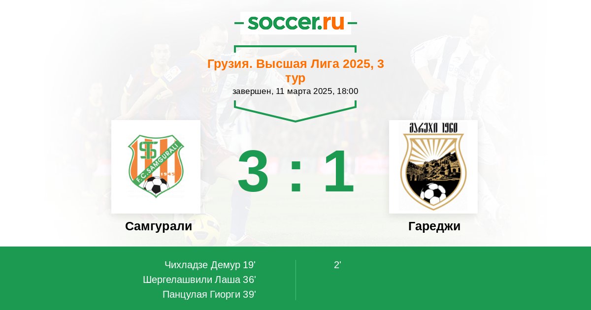 39' (3:1) Панцулая Гиорги (14) (Хорхели Лука (11))