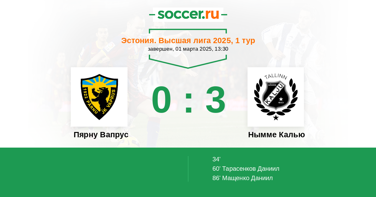 Запасные: 10 Веенсалу Энрико (с 71'), 21 Мадиссо Реймо (с 71'), 43 Сеппик Маркуус (с 71'), 3 Рэнд Карл (с 84'), 5 Аэр Сим (с 84'), 1 Ваину Хендрик, 11 Каубер Кевин, 12 Ристимец Марккус, 14 Орм Расмус