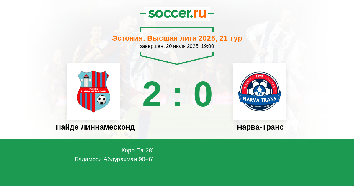 Запасные: 99 Хару Эбрима, 2 Лиландер Майкл (с 76'), 9 Рейнкорт Стэн, 10 Миллер Мартин, 14 Сарма Роби, 15 Оямаа Хиндрик, 17 Чам Па Абду (с 76'), 19 Лутс Сиим (с 76'), 30 Бадамоси Абдурахман (с 70')