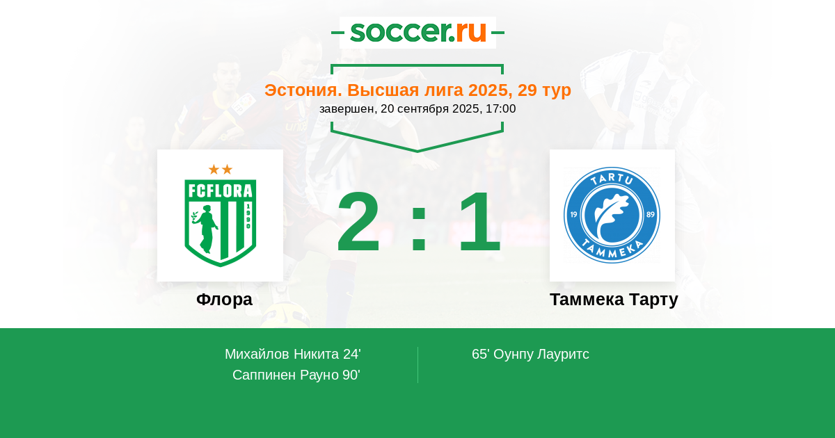 Запасные: 77 Лапа Кристен, 2 Калмоков Никита, 9 Аллику Рауно (с 46'), 10 Поом Маркус (с 76'), 11 Саппинен Рауно (с 68'), 15 Андреас Дэвид (с 68'), 17 Рыйвасепп Грегор, 20 Зенев Сергей (с 81'), 23 Колобов Михаил, 26 Хуссар Кристо, 32 Крейда Владислав