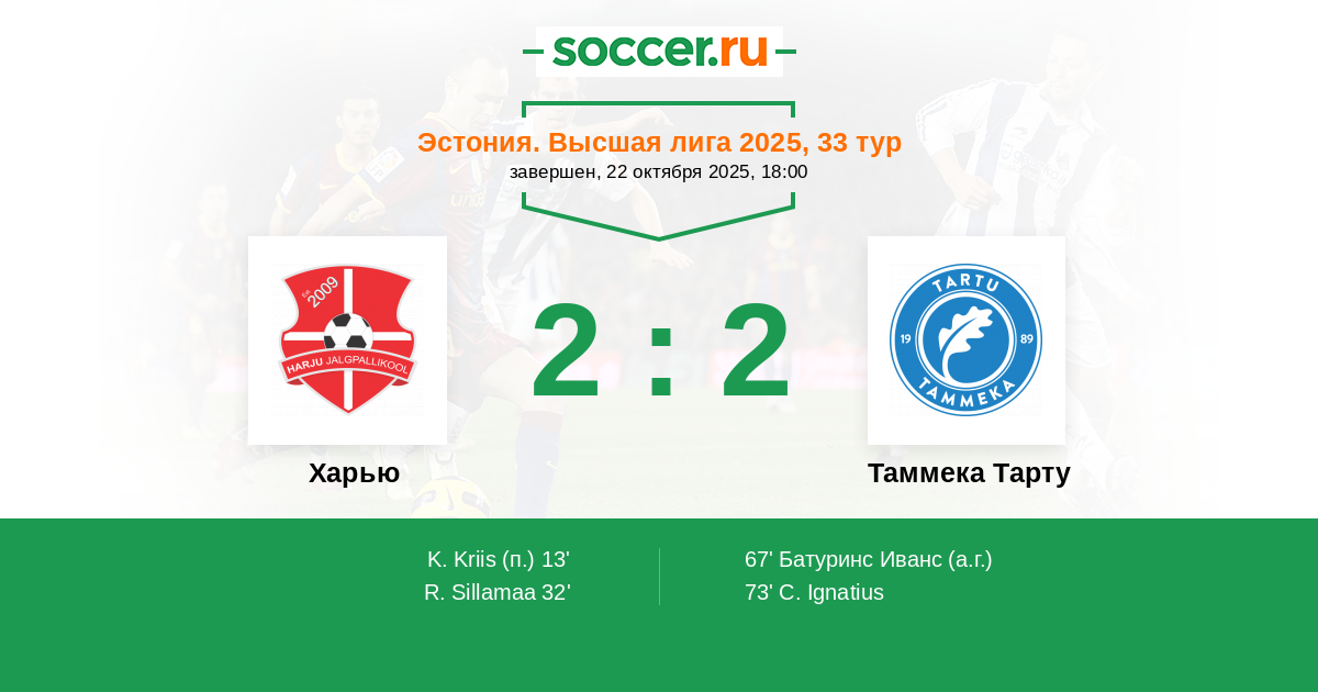32' (2:0) Силлама Рамол (13) (Келемент Мартен (17))