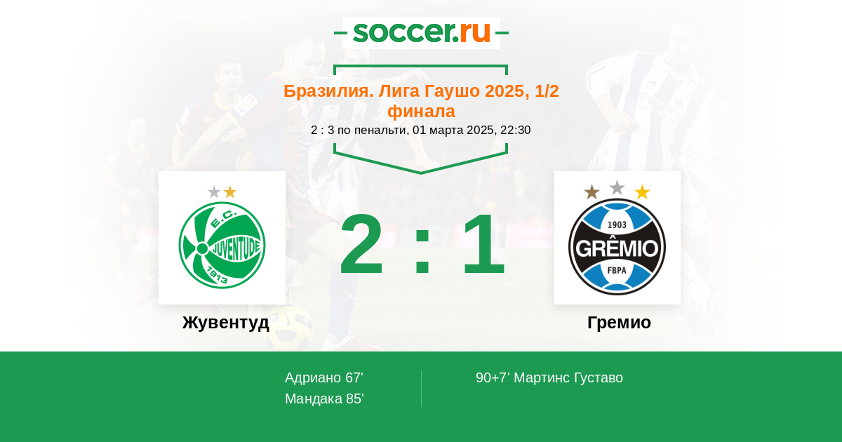Запасные: 53 Мартинс Густаво (с 46'), 15 Камило (с 46'), 19 Аресо Матиас (с 68'), 7 Павон Кристиан (с 68'), 8 Эденилсон (с 84'), 77 Андре, 30 Кандидо Луан, 12 Габриэл Чапеко, 44 Вьери, 17 Дуглас, 2 Жоао Лукас, 34 Игор