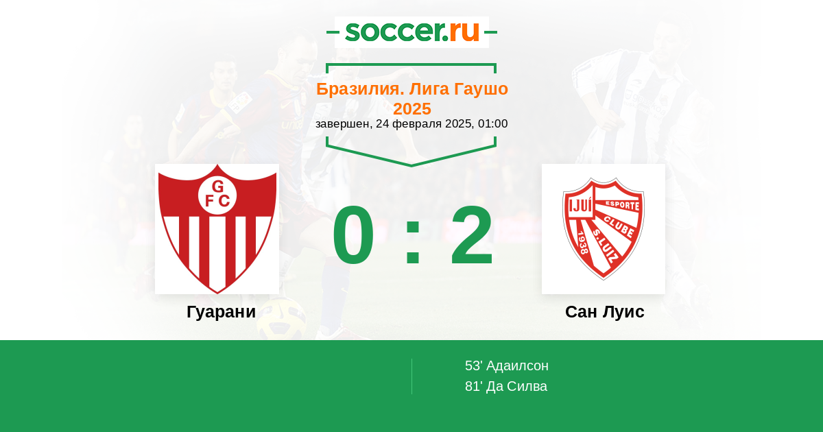 Запасные: 18 Адаилсон (с 13'), 22 Матеус (с 34'), 14 Рикардо Талеймер (с 34'), 15 Диего (с 63'), 19 Да Силва (с 63'), 20 Луизиньо, 12 Диего, 25 Тете, 16 Энрике Авила, 21 Дэвис Габриэл, 13 Де Сильвейра Фелипе