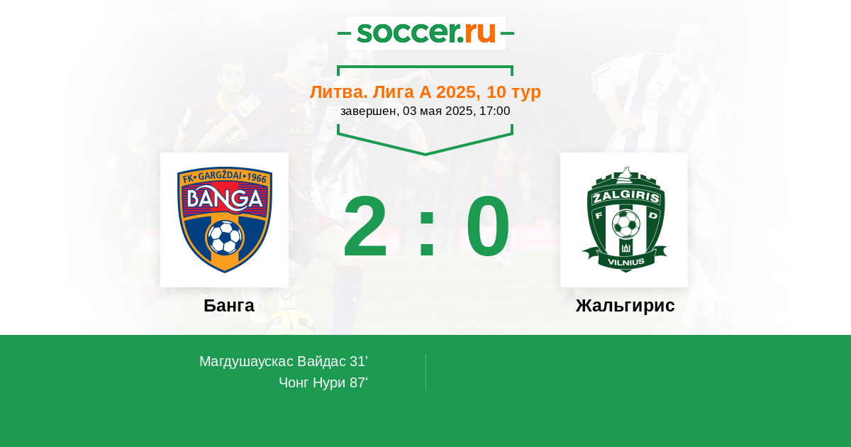 31' (1:0) Магдушаускас Вайдас (10)