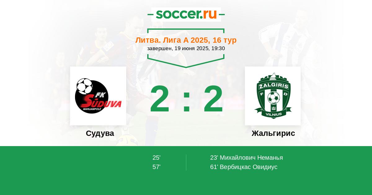 61' (2:2) Вербицкас Овидиус (22) (Мутахи Жорис (45))