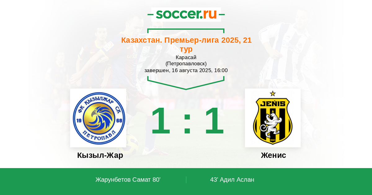 80' (1:1) Жарунбетов Самат (14) (Себаи Сенин (15))