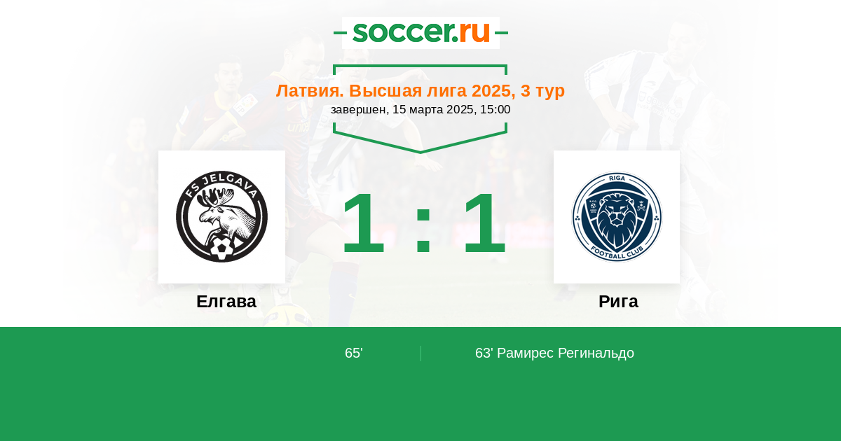63' (0:1) Рамирес Регинальдо (10) (Даскевич Эдуардс (7))