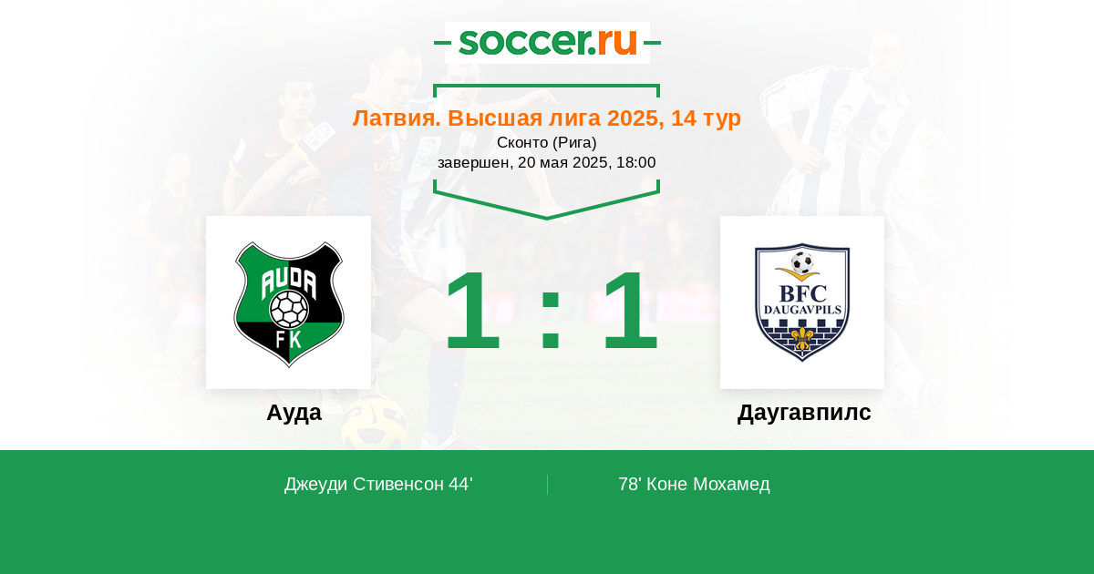 44' (1:0) Джеуди Стивенсон (99) (Варславанс Ренарс (14))