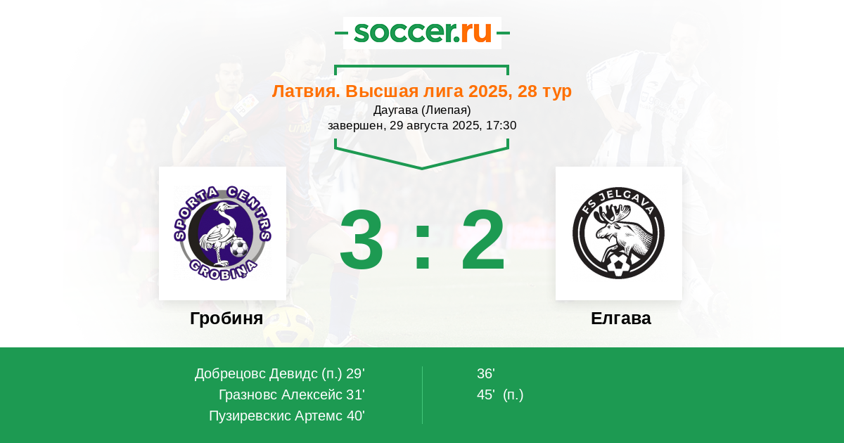 29' (1:0) Добрецовс Девидс (10)