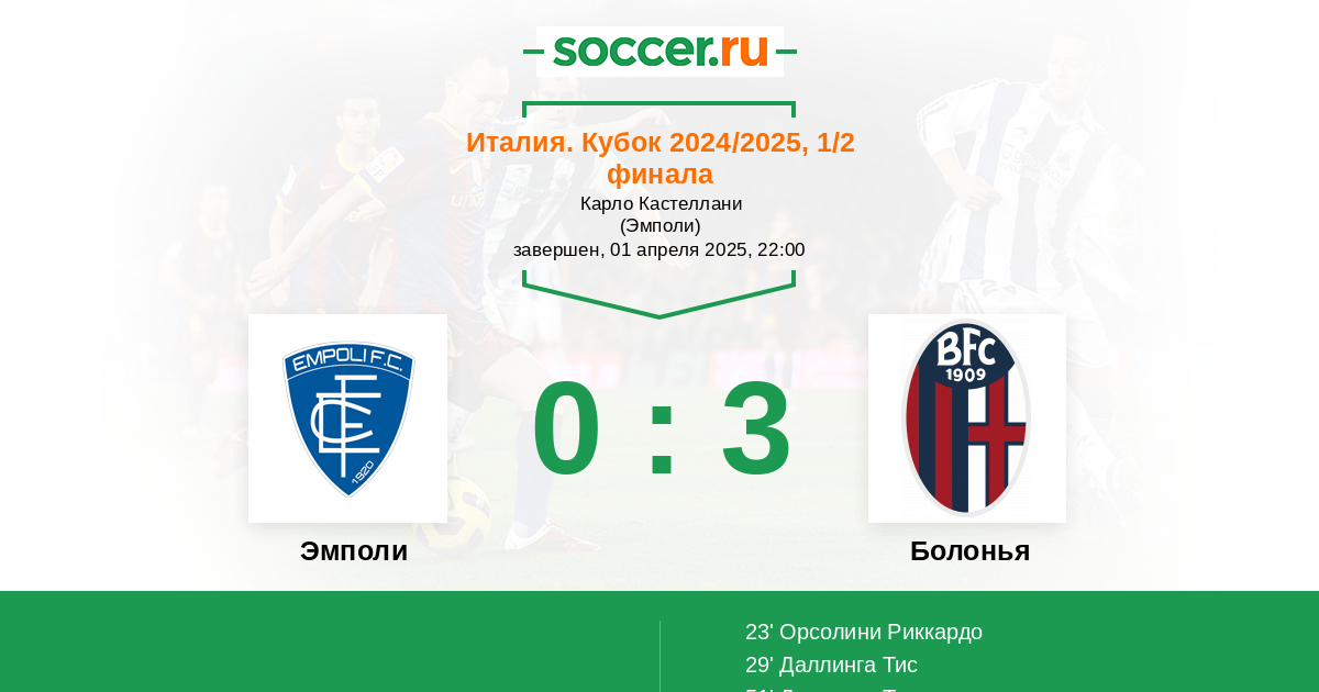 23' (0:1) Орсолини Риккардо (7) (Одгор Йенс (21))