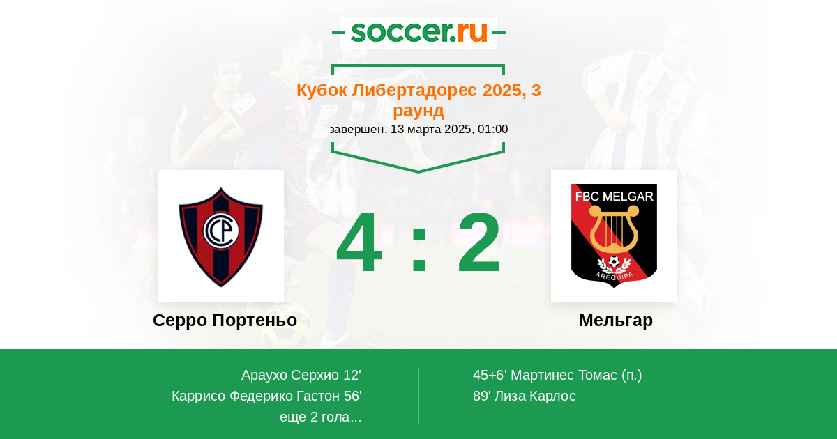 12' (1:0) Араухо Серхио (21) (G. Aguayo)