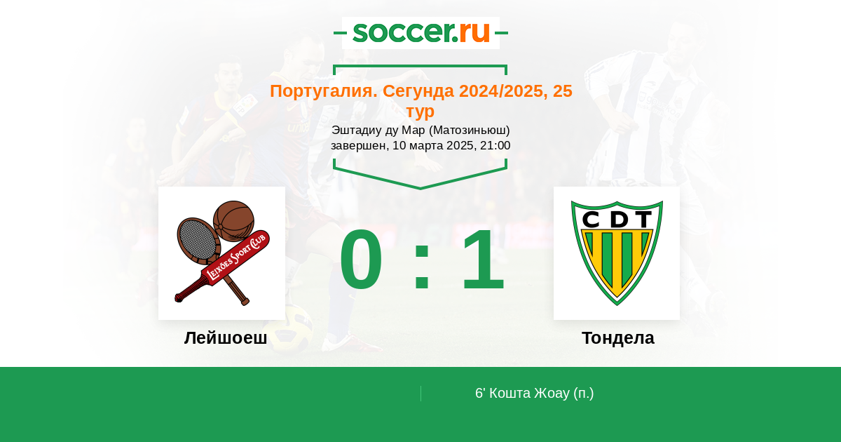 6' (0:1) Кошта Жоау (11)