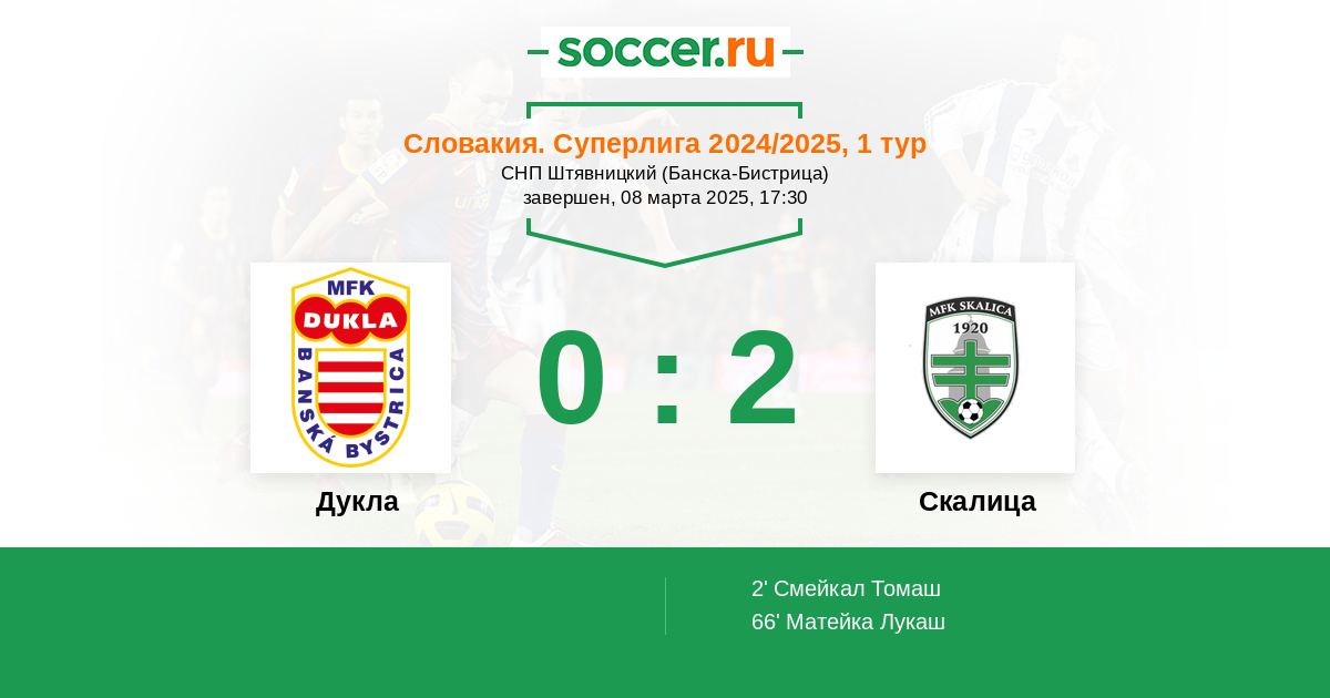 66' (0:2) Матейка Лукаш (12) (Моронг Адам (9))