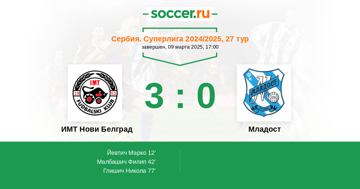 12' (1:0) Йевтич Марко (14) (Глишич Никола (5))