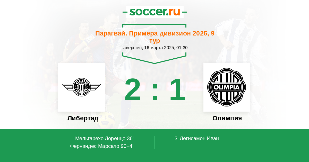 3' (0:1) Легисамон Иван (29) (Гонсалес Дерлис (10))