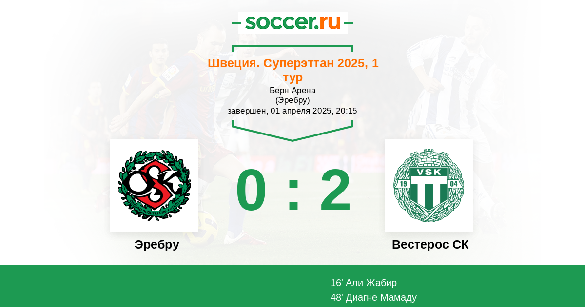 16' (0:1) Али Жабир (9) (Вернерссон Виктор (21))
