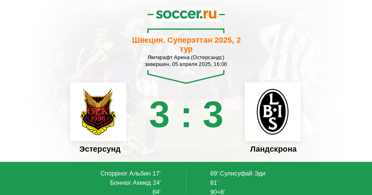 24' (2:0) Боннах Ахмед (22) (Марклунд Симон (10))