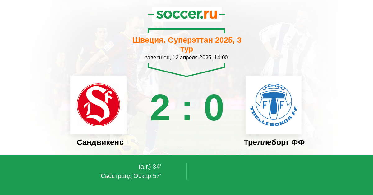 57' (2:0) Сьёстранд Оскар (11) (Симба Мунга (10))