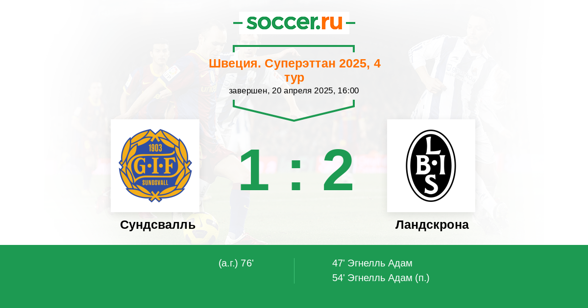 47' (0:1) Эгнелль Адам (5) (M. Nilsson)