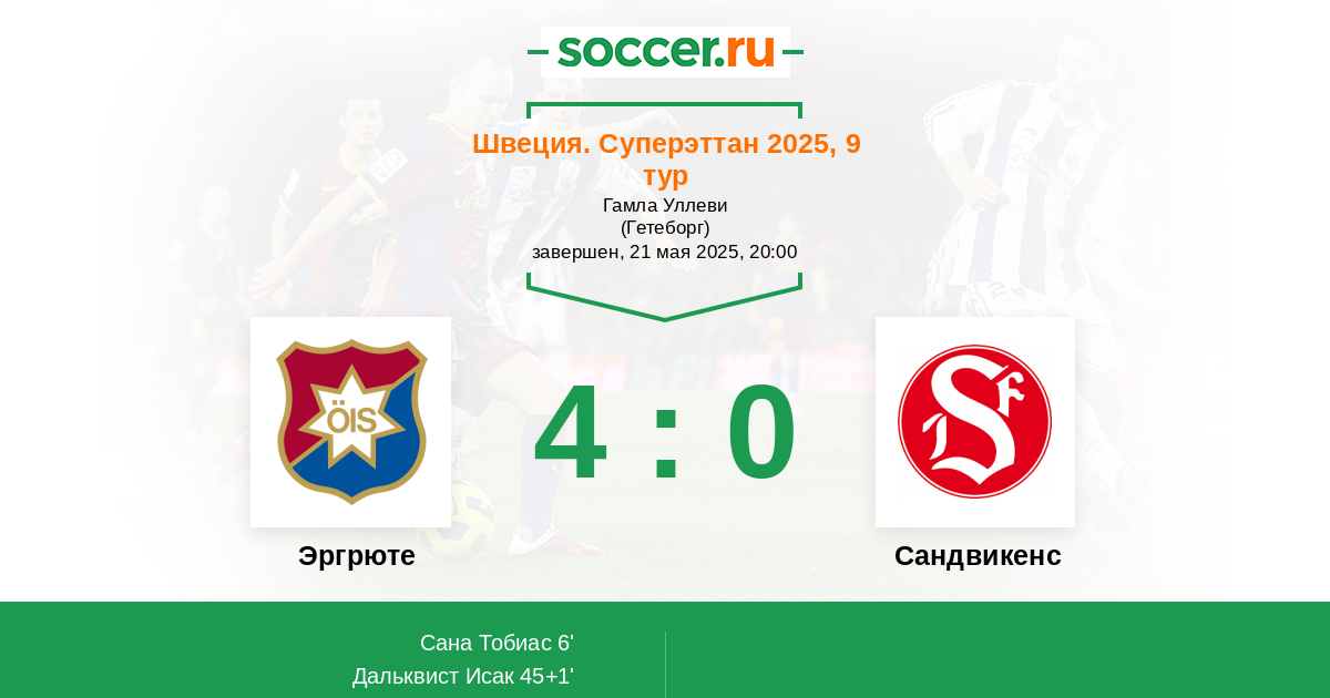 46' (3:0) Христофферссон Ной (11) (Сана Тобиас (22))
