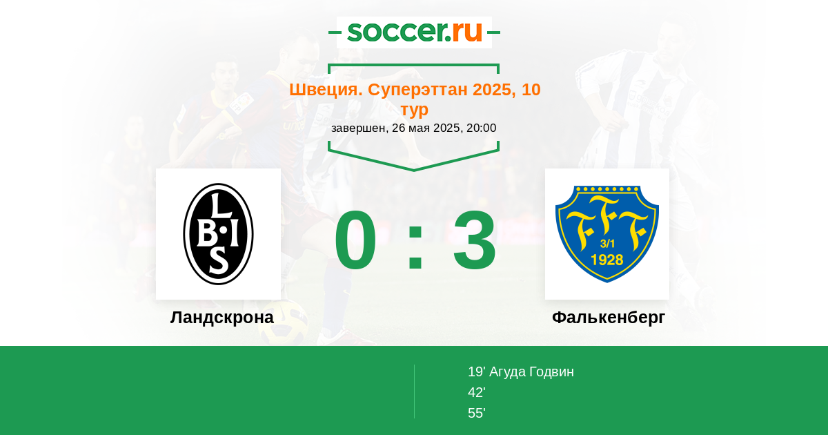 19' (0:1) Агуда Годвин (30) (L. Sibelius)