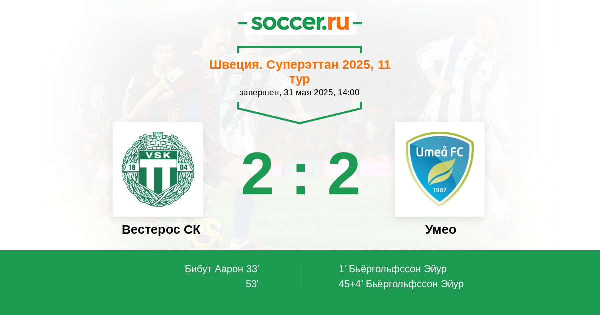 1' (0:1) Бьёргольфссон Эйур (10) (Линдмарк Стефан (6))