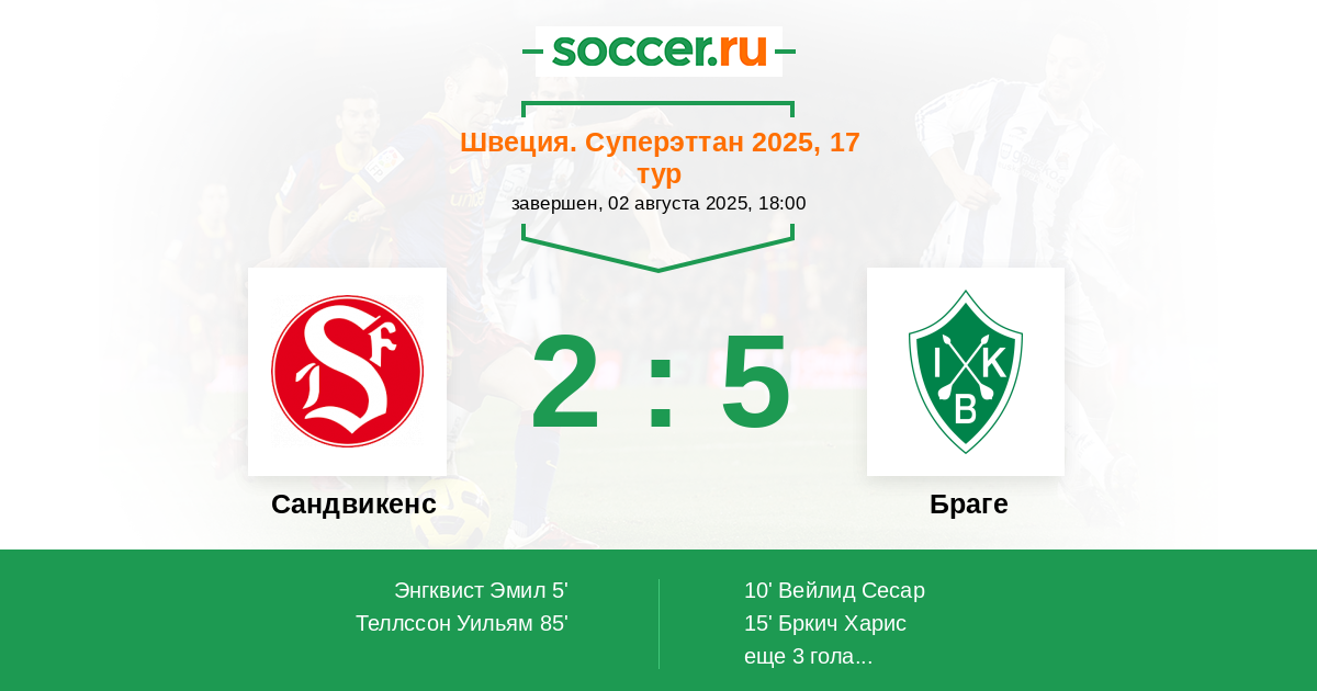 5' (1:0) Энгквист Эмил (23) (Седерберг Даниэль (8))