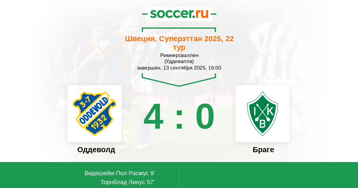 9' (1:0) Видешейм-Пол Расмус (19) (Эденкист Эрик (3))