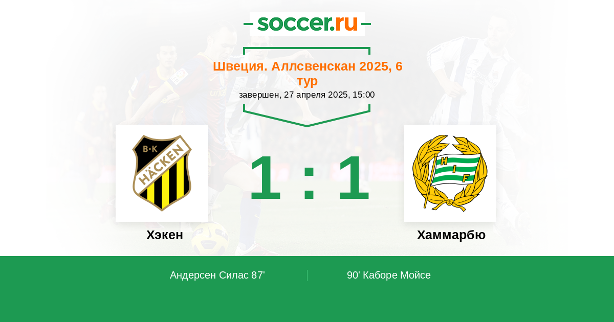 90' (1:1) Каборе Мойсе (29) (Маджед Монтадер (26))