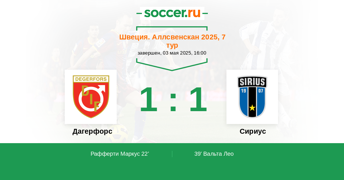 39' (1:1) Вальта Лео (14) (Линдберг Маркус (17))