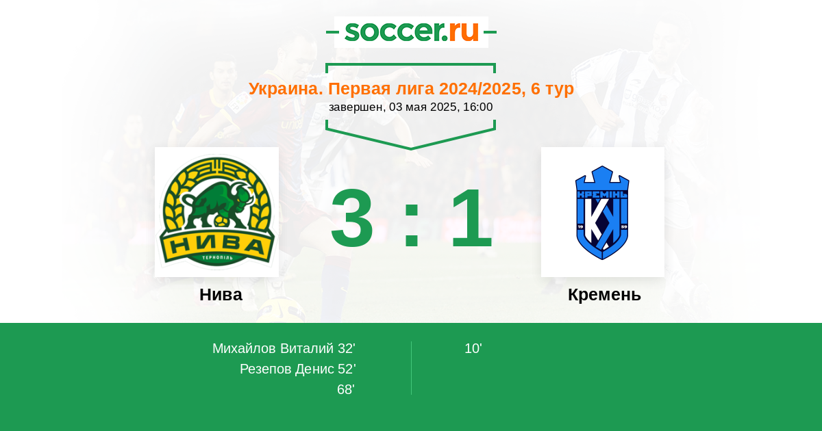 68' (3:1) B. Vyshynskyi