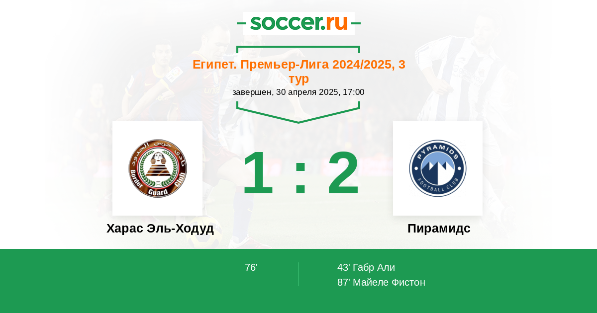 43' (0:1) Габр Али (5) (Хамди Мохамед (21))