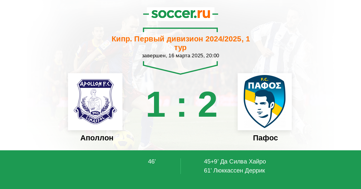45+9' (0:1) Да Силва Хайро (10)