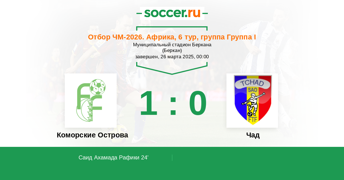 Запасные: 6 Мохамед Ияд (с 68'), 27 Лутин Райан (с 68'), 21 Махамуд Адель (с 69'), 22 Бакари Саид (с 75'), 13 Саид М'Мади Якин (с 90+2'), 23 Анзимати-Абуду Адель, 24 Маттоир Фаиз, 5 Соилихи Ахмед, 16 Пандо Янник, 2 Боура Исмаэль, 9 Али Абдалла Абубакар