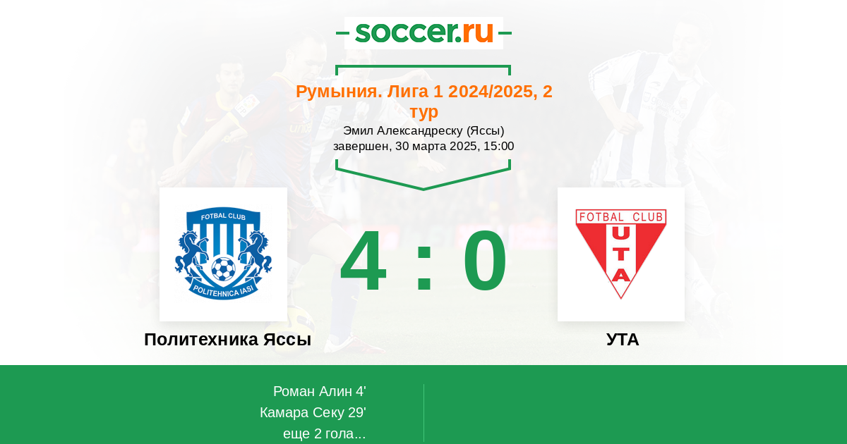 4' (1:0) Роман Алин (10) (Гилерме (42))