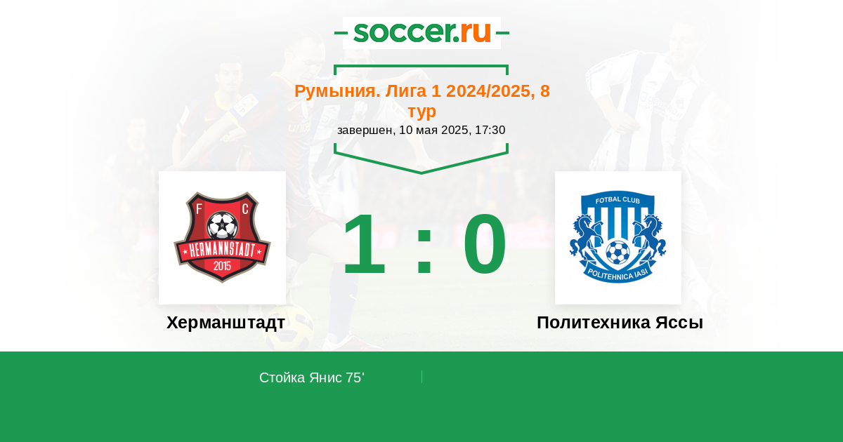 75' (1:0) Стойка Янис (7) (Антви Нана (30))