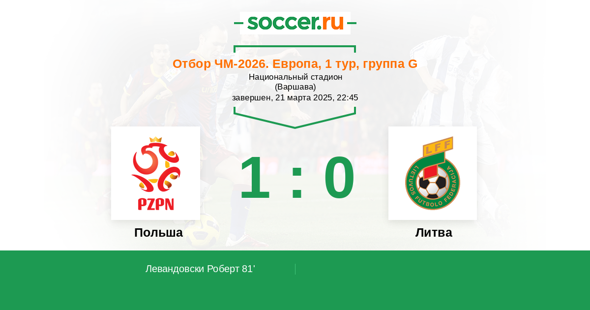 81' (1:0) Левандовски Роберт (9) (Камински Якуб (13))