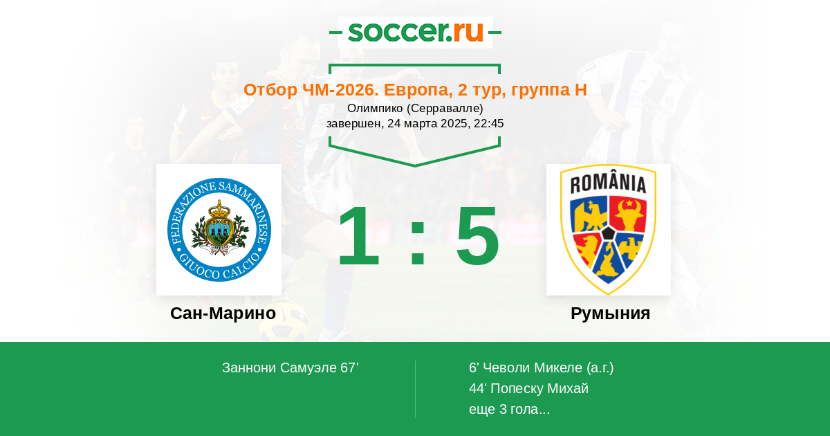 Запасные: 23 Казадей Валли (с 46'), 20 Сенсоли Нико (с 46'), 21 Риккарди Альберто (с 62'), 19 Джакопетти Николас (с 66'), 7 Санти Симоне (с 76'), 14 Валентини Джакомо, 15 Пасолини Марко, 6 Росси Данте, 1 Де Анджелис Мирко, 22 Муларони Марселло, 13 Заволи Маттео, 4 Фаббри Филиппо