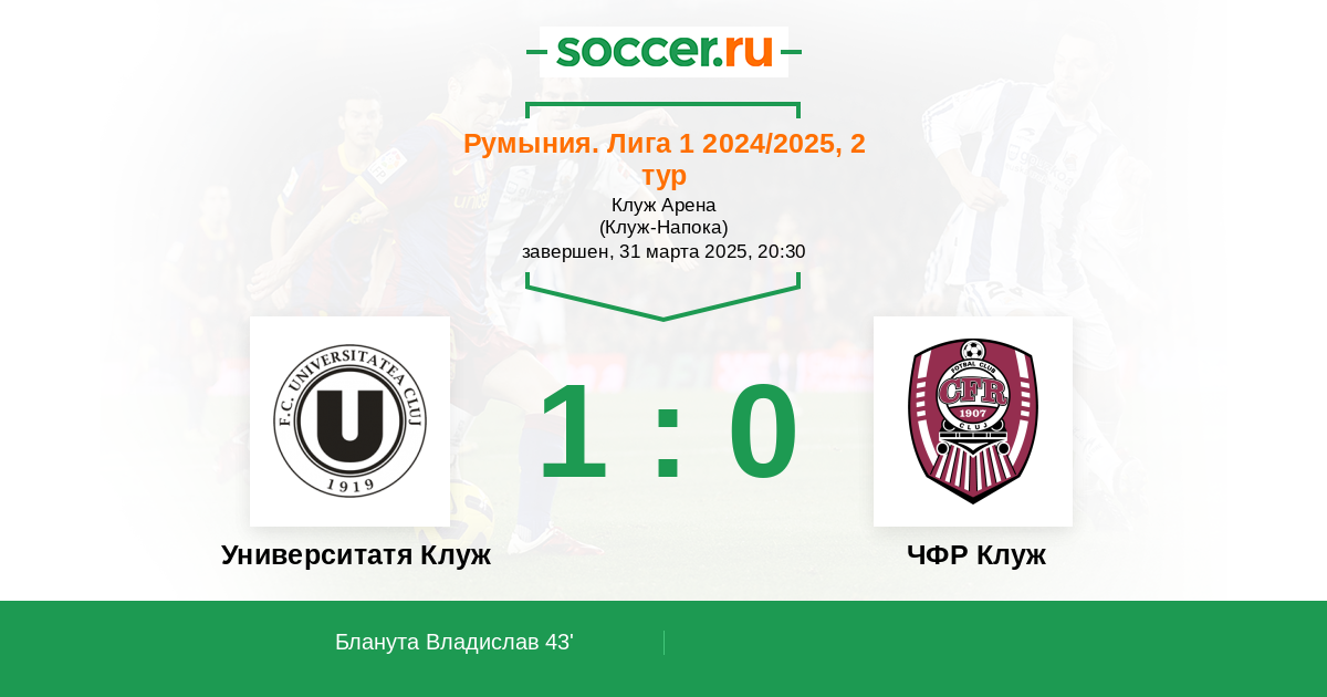 Запасные: 8 Кодреа Дорин (с 11'), 26 Оанчеа Доринель (с 72'), 3 Митря Богдан (с 72'), 7 Сигали Роберт (с 72'), 22 Рата Вадим (с 88'), 1 Лефтер Штефан, 12 Молдован Денис, 13 Фабри Андрей, 9 Беттайеб Адель, 11 Миранян Артур